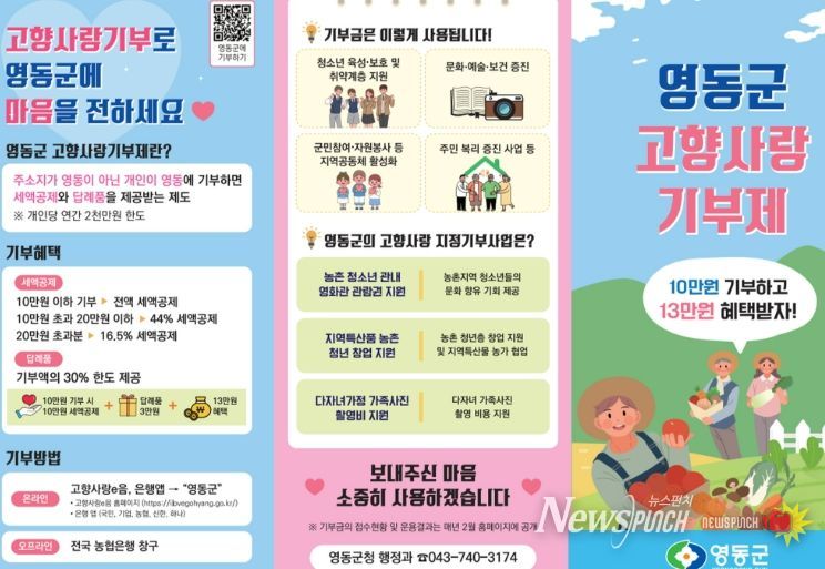 뉴스펀치 강영선 기자 | 충북 영동군의 2025년 고향사랑기부제 모금액은 약 4억 2천만 원으로 집계됐다.