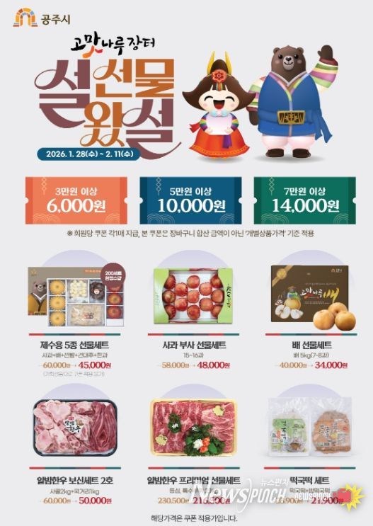 뉴스펀치 강영선 기자 | 공주시가 직접 운영하는 농·특산물 온라인 판매 쇼핑몰 ‘고맛나루장터’는 설 명절을 맞아 1월 28일부터 2월 11일까지 15일간 특별 할인 기획전을 실시한다.