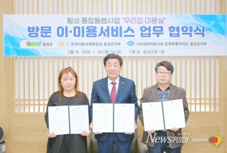 군은 26일, 한국이용사회중앙회 강원도지회 횡성군지부 및 대한미용사회 횡성군지부(지부장 정덕희)와 ‘방문 이·미용 서비스’ 제공을 위한 업무협약을 체결했다.
