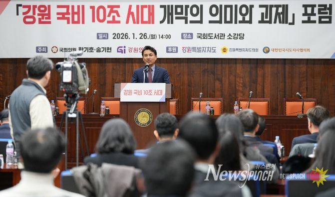 뉴스펀치 조평훈 기자 | 강원특별자치도는 1월 26일 오후 2시 한기호(강원 춘천・철원・화천・양구을) ・송기헌(강원 원주을) 국회의원과 강원연구원이 공동 주최한 ‘국비 10조 시대 개막의 의미와 과제’ 포럼을 개최했다고 밝혔다.