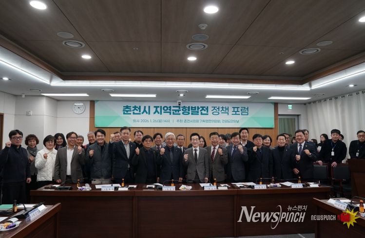 뉴스펀치 조평훈 기자 | 춘천시의회 기획행정위원회(위원장 박제철)와 강원도민일보는 1월 26일 오후 2시, 춘천시의회 소회의실에서 '춘천시 지역균형발전 정책포럼'을 개최했다.