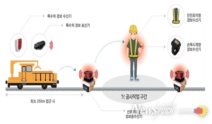 열차접근 경보장치는 특수차가 접근할 경우 작업자의 조끼·손목시계 등 4종 수신 알림장치로 즉시 경보음을 송출하는 방식으로 작동한다. 시·청각 기반 알림시스템 도입을 통해 작업자가 대피할 수 있는 ‘골든타임’을 확보할 수 있게 됐다.