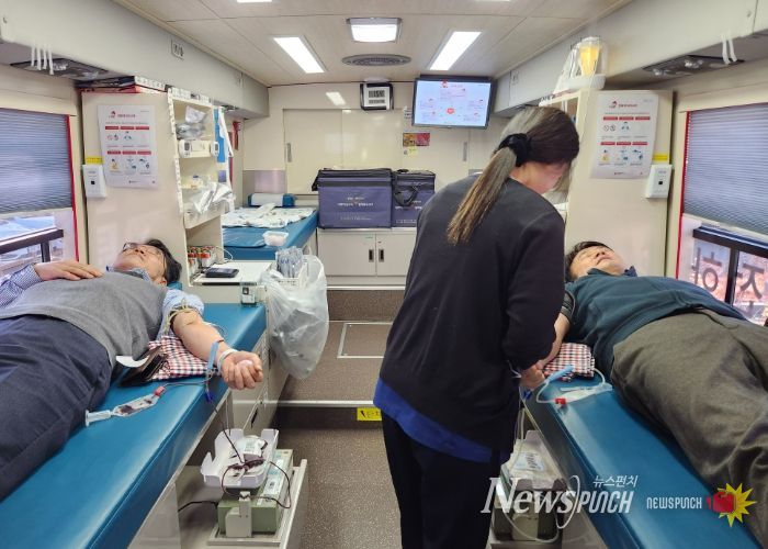 뉴스펀치 박세훈 기자 | 포항교육지원청은 최근 이어진 한파로 헌혈 참여가 감소함에 따라 혈액 수급난 해소에 동참하고자 27일 직원들을 대상으로 ‘생명을 이어주는 사랑의 헌혈 운동’을 실시했다.