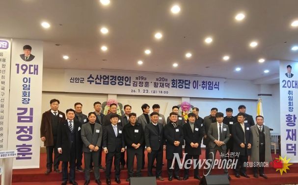 뉴스펀치 김용희 기자 | (사)한국수산업경영인 신안군연합회는 지난 1월 23일, 목포 예술웨딩컨벤션 6층 연회홀에서 제19·20대 회장단 이·취임식을 개최했다.