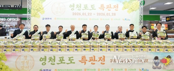 뉴스펀치 박세훈 기자 | 영천시는 22일부터 28일까지 일주일간 대형 하나로마트 9개점에서 ‘설 명절맞이 영천포도 특판행사’를 진행한다고 밝혔다.