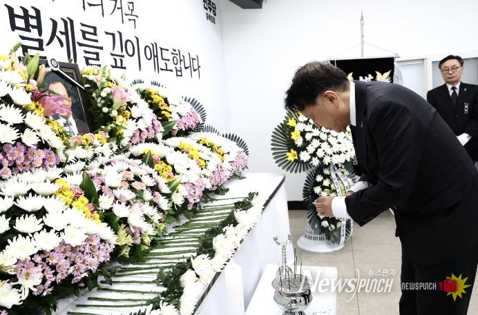 뉴스펀치 이현승 기자 | 김영환 충북도지사가 27일 청주시 청원구 더불어민주당 충북도당사 대회의실에 마련된 고(故) 이해찬 전 국무총리 합동분향소를 찾아 조문했다.
