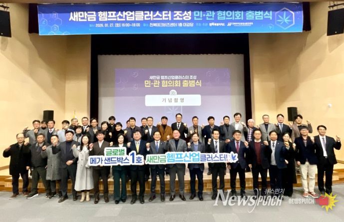 뉴스펀치 최영남 기자 | 전북특별자치도가 27일 전북테크비즈센터에서 ‘새만금 헴프산업클러스터 조성 민관협의회 출범식’을 개최하며 헴프(대마) 기반 고부가가치 산업 육성에 본격 시동을 걸었다.