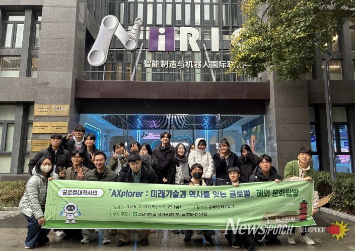 뉴스펀치 김용희 기자 | 전남대학교 창의융합학부(학부장 이인혜)는 ‘글로컬대학사업’의 일환으로 지난 1월 20일부터 23일까지 3박 4일간, 중국 상해와 항주 일대에서 무전공 학생들을 위한 글로벌 진로 탐방 프로그램 'AXplorer: 미래기술과 역사를 잇는 글로벌 탐방'을 성황리에 마쳤다.