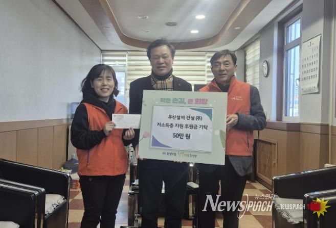 뉴스펀치 이현승 기자 | 우신설비건설㈜은 지난 27일 온양2동 행복키움추진단에 저소득층 지원을 위한 후원금 50만 원을 전달했다.