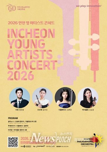 뉴스펀치 정홍균 기자 | 인천 클래식 샛별들의 축제, 인천시립교향악단 '2026 인천 영 아티스트 콘서트'가 2월 25일 오후 7시 30분, 인천문화예술회관 대공연장에서 열린다.