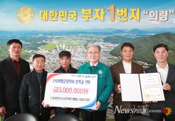 뉴스펀치 박세훈 기자 | 의령군은 지난 27일 (사)대한민속소힘겨루기협회 의령군지회가 지역 인재 육성과 교육 여건 개선을 위해 (사)의령군장학회에 장학금 300만원을 기탁했다고 밝혔다.