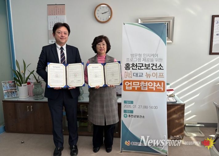 홍천군 치매안심센터는 2026년 1월 27일 ㈜대교뉴이프와 방문형 인지 케어 프로그램 업무협약을 체결했다고 밝혔다.