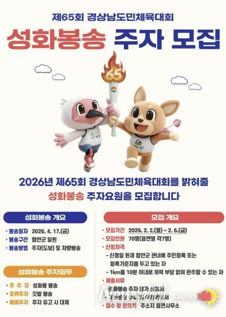 뉴스펀치 박세훈 기자 | 함안군은 제65회 경상남도민체육대회의 시작을 알릴 성화봉송 주자를 공개 모집한다고 28일 밝혔다.