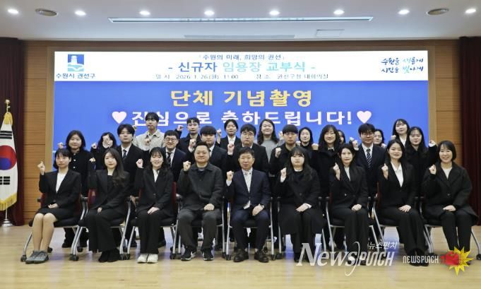 뉴스펀치 박상훈 기자 | 수원시 권선구는 지난 26일, 권선구청 2층 대회의실에서 신규 공직자 27명이 참석한 가운데 임용장 수여식을 개최했다.