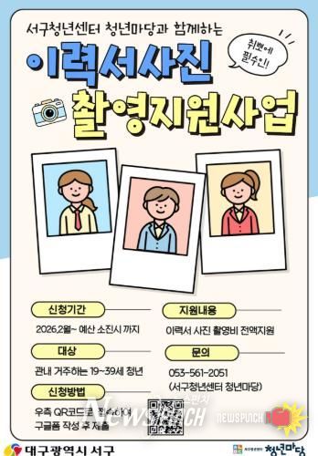 뉴스펀치 조평훈 기자 | 대구 서구는 관내 청년 구직자의 경제적 부담을 줄이고 안정적인 사회 진출을 지원하기 위해 ‘이력서 사진 촬영 지원 사업’과 ‘취업 면접실(AI 모의 면접) 운영 사업’을 실시한다고 밝혔다.