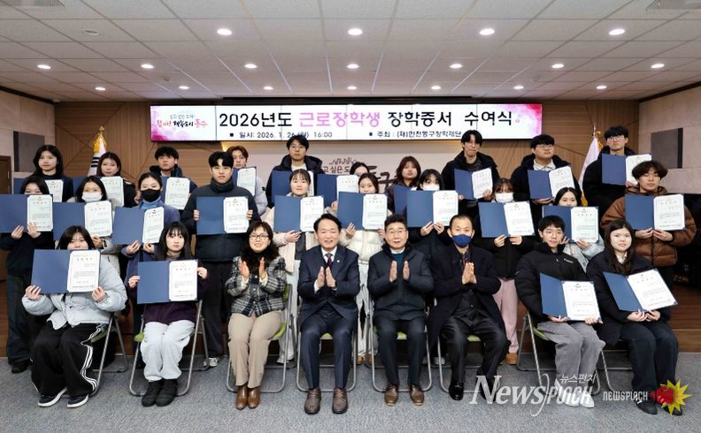 뉴스펀치 정홍균 기자 | (재)인천동구장학재단(이사장 김찬진)은 지난 26일 구청 소나무홀에서‘2026년도 근로장학생 장학증서 수여식’을 개최했다고 밝혔다.