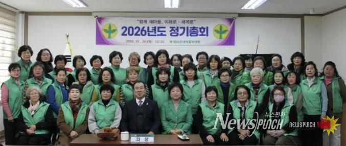 뉴스펀치 박세훈 기자 | 창녕군 새마을부녀회는 26일 새마을회관에서 창녕군새마을회 황영수 회장을 비롯한 회원단체장, 읍·면부녀회장과 부회장 등 50여 명이 참석한 가운데 ‘2026년도 창녕군 새마을부녀회 정기총회’를 개최했다.