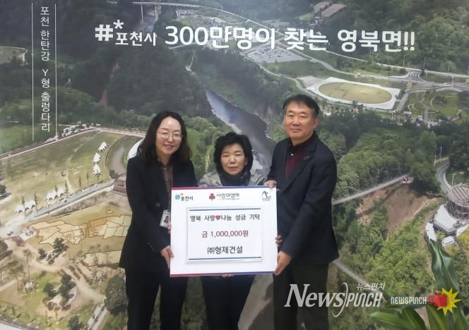 김송학 영북면장은 “꾸준히 나눔을 실천해 주시는 형제건설에 감사드린다”며 “기탁된 성금이 꼭 필요한 분들께 전달될 수 있도록 하겠다”고 밝혔다.