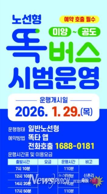 뉴스펀치 박상훈 기자 | 안성시는 1월 29일부터 미양면과 공도읍을 직접 연결하는 노선형 똑버스를 운행한다.
