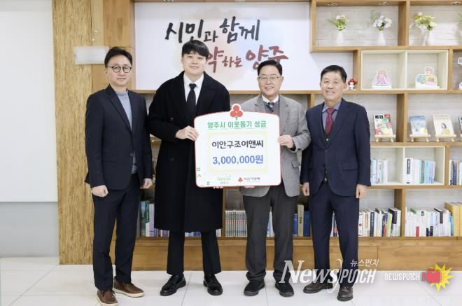 뉴스펀치 박상훈 기자 | 양주시는 28일 이안구조이앤씨로부터 설 명절을 앞두고 이웃돕기 성금 300만 원을 기탁받았다고 밝혔다.