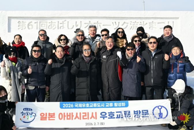 뉴스펀치 김윤걸 기자 | 울산 남구는 7일 일본 홋카이도 아바시리시에서 열린 ‘제61회 아바시리 오호츠크 유빙축제’ 개막식에 공식 초청단으로 참석해 우호교류도시 간 협력 강화와 민간단체 교류 활성화에 나섰다.