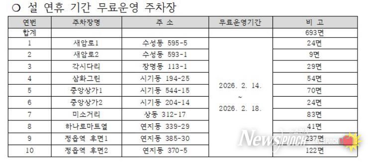 이번 조치는 명절을 맞아 고향을 찾는 귀성객과 시민들에게 주차 편의를 제공하고 시민들이 부담 없이 도심 상권과 전통시장을 이용할 수 있도록 유도해 지역 경제에 활력을 불어넣기 위해 마련됐다.