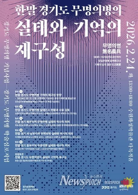 뉴스펀치 박상훈 기자 | 경기문화재단은 경기도 무명의병 기념사업의 일환으로 제2회 학술심포지엄을 개최한다. '한말 경기도 무명의병의 실태와 기억의 재구성'이라는 주제로 2024년부터 이어온 경기도 31개 시군 무명의병 실태조사 성과를 학술적으로 공론하기 위해 마련됐다.