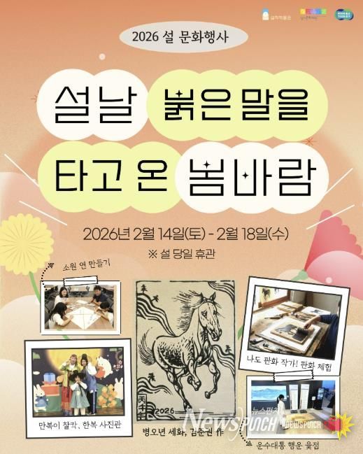 뉴스펀치 박상훈 기자 | 경기문화재단 실학박물관은 2026년 병오년(丙午年) 설 명절을 맞아 오는 2월 14일부터 18일까지 문화 행사 '설날, 붉은 말을 타고 온 봄바람'을 운영한다. 이번 행사는 박물관 로비에 마련된 체험 부스에서 진행되며, 실학박물관을 찾는 가족 단위 관람객을 위해 전통 세시풍속을 현대적인 놀이와 체험으로 재해석하여 관람객에게 특별한 추억을 선사할 예정이다.