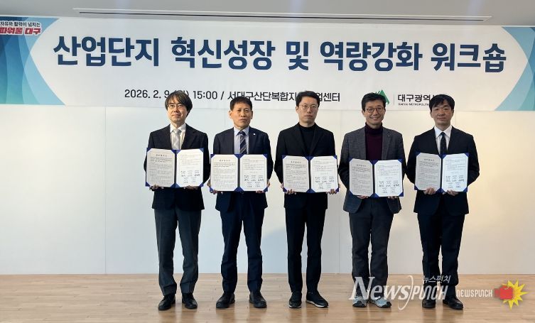 뉴스펀치 조평훈 기자 | 대구광역시는 2월 9일 서대구산단복합지식산업센터에서 산업단지 유관기관이 참여하는 ‘산업단지 혁신성장 및 역량강화 워크숍’에서 유관기관과 업무협약(MOU)을 체결했다.