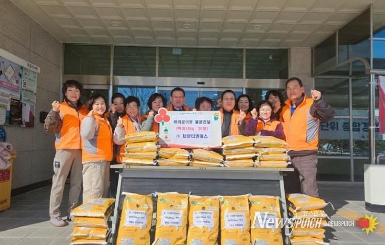 뉴스펀치 김윤걸 기자 | 주식회사 대한티앤에스가 설날 명절을 맞아 9일 울주군 청량읍 행정복지센터를 방문해 어려운 이웃을 위해 백미(10㎏) 30포를 기부했다.
