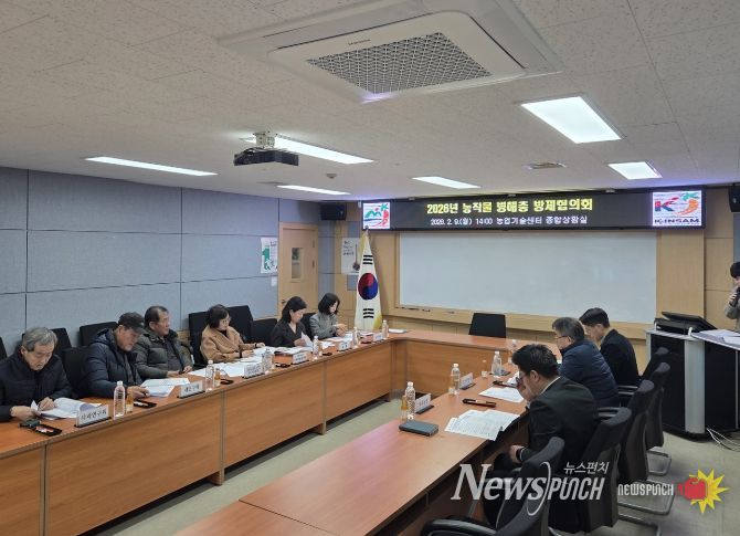 뉴스펀치 강영선 기자 | 금산군농업기술센터는 지난 9일 센터 종합상황실에서 지역 농업의 안정적인 생산 기반 조성과 병해충 피해 최소화를 위한 농작물 병해충 방제협의회를 개최했다.