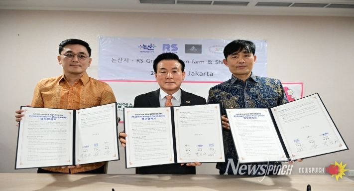 9일 논산시는 인도네시아 자카르타에서 RS Group(대표 이승준), PT. Shine Factory(대표 여종률)와 딸기산업의 경쟁력 강화를 위한 MOU를 체결했다.