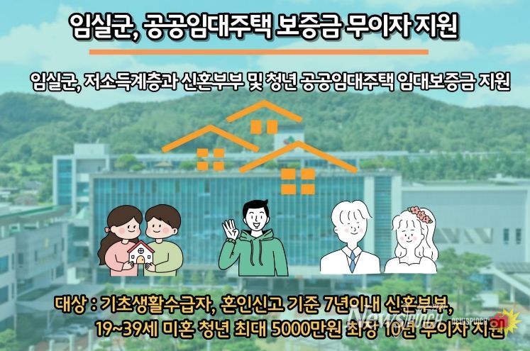뉴스펀치 정홍균 기자 | 임실군이 관내 무주택 기초생활수급자와 신혼부부, 청년의 주거 안정을 위해 ‘공공임대주택 임대보증금 지원사업’을 지속 추진하며 실질적인 주거복지 강화에 나선다.