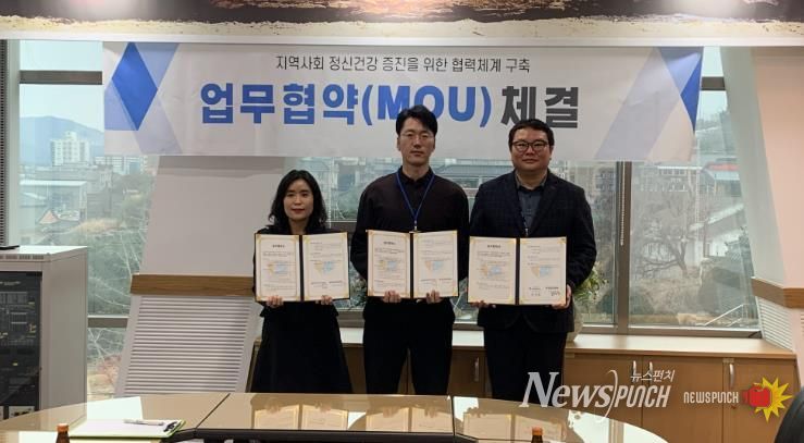 뉴스펀치 김윤걸 기자 | 울주군정신건강복지센터가 10일 울주군보건소 소회의실에서 중부종합복지타운 내 노인복지관 및 장애인복지관과 지역사회 정신건강 증진을 위한 업무협약을 체결했다.
