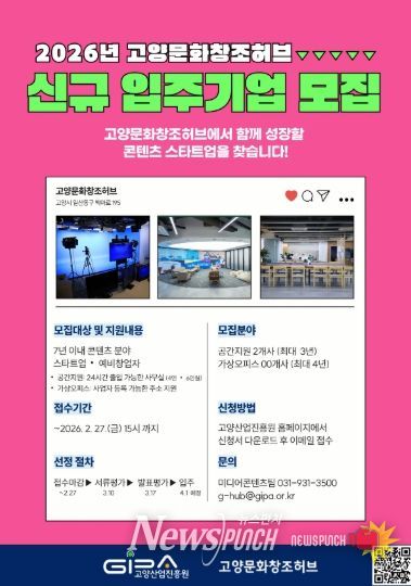 뉴스펀치 박상훈 기자 | 고양특례시와 고양산업진흥원이 오는 27일 오후 3시까지 고양문화창조허브 신규 입주기업을 모집한다.
