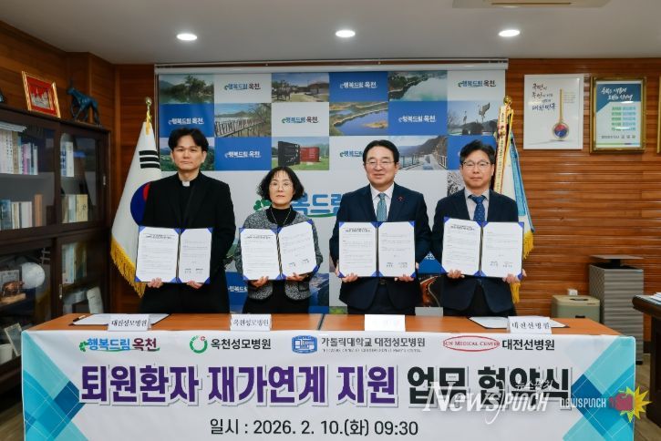 뉴스펀치 이현승 기자 | 옥천군은 의료·요양 통합돌봄사업의 일환으로 10일 군청 군수실에서 ‘퇴원환자 재가연계 지원’을 위한 업무협약을 체결했다고 밝혔다. 이번 사업은 오는 3월 27일 시행된다.