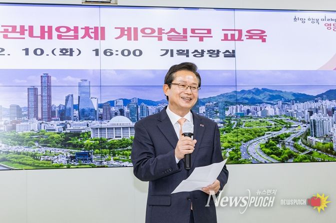 뉴스펀치 박상훈 기자 | 최호권 영등포구청장이 2월 10일 오후, 구청 기획상황실에서 관내업체를 대상으로 열린 계약실무 교육에 참석했다.