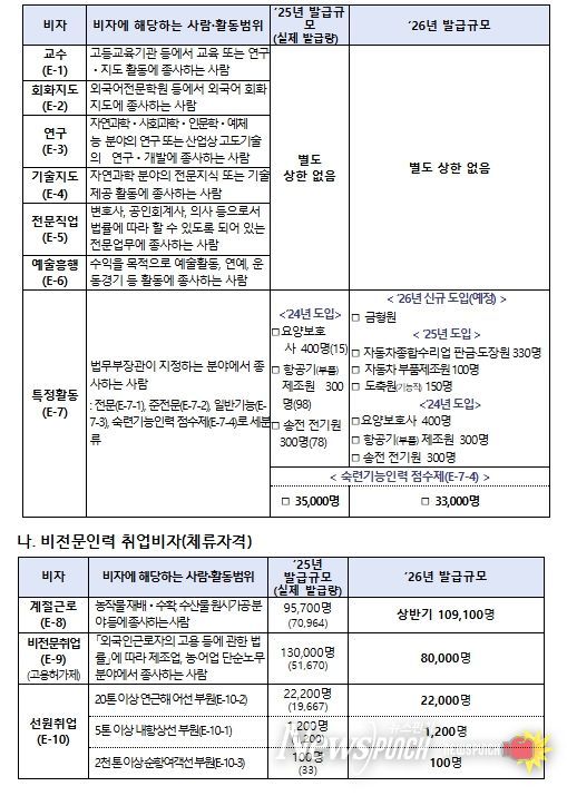 이러한 분석 결과를 토대로, 법무부는 2026년 숙련기능인력(E-7-4) 비자의 연간 발급규모를 3만 3천 명으로 조정했다. 이는 최근 비자 전환 추이, 산업 수요, 관계부처 의견을 종합적으로 고려하여 전년(3만 5천 명)보다 소폭 하향 조정한 규모이다.