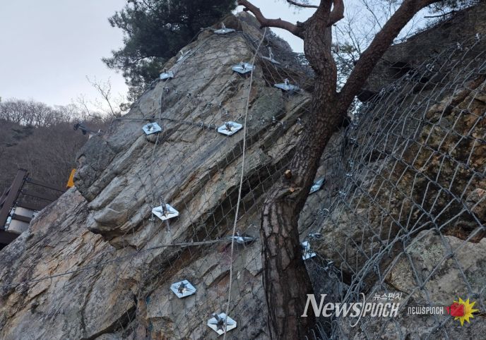 이 보강공사는 지난해 7월 탐방로 사면 정밀안전 자체점검 당시 낙석방지망 추가 설치와 사면 정비가 필요하다는 판단에 따라 선제적으로 조치한 것으로 총사업비 13억 원(국비 7억, 시비 6억)을 투입해 집중적인 보수 작업을 진행해 왔다.