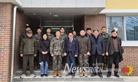 뉴스펀치 김윤걸 기자 | 부산진구 재향군인회(회장 노재현)는 민족의 대명절 설을 맞아 2월 10일, 육군 제126여단 4대대를 방문해 혹한기 훈련 중인 장병들을 위문했다.