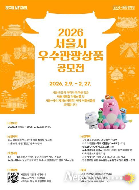 뉴스펀치 박상훈 기자 | 서울시와 서울관광재단은 서울의 매력을 즐길 수 있는 체험형 관광상품을 발굴‧육성하기 위해 '2026 서울시 우수관광상품 공모전'을 2월 9일부터 27일까지 진행한다.