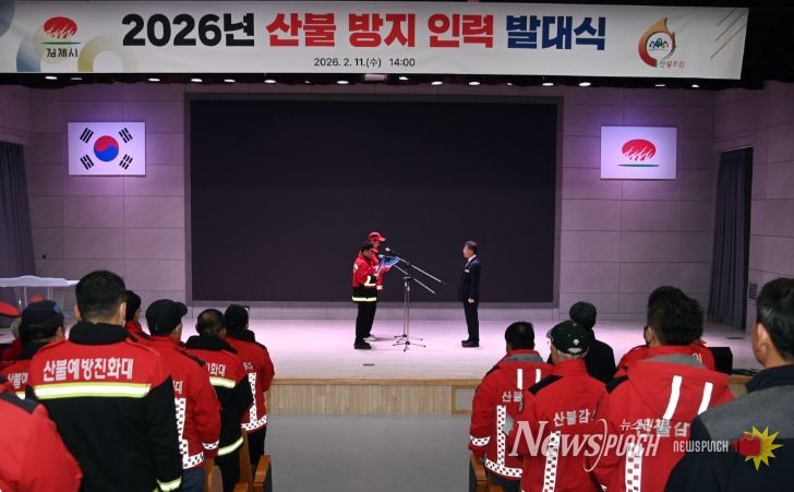 뉴스펀치 최영남 기자 | 김제시는 11일 2026년 산불 예방을 위해 산불감시원, 산불전문예방진화대원, 담당 공무원 등 120여명이 참석해 산불방지 발대식을 가졌다고 밝혔다.