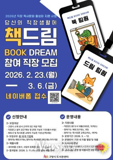 시 관계자는 “직장 안에서 자연스럽게 책을 접할 수 있는 환경을 만드는 것이 독서문화 확산의 중요한 출발점”이라며, “책드림 사업을 통해 직장인이 일상 속에서 부담 없이 독서를 경험하고, 자발적인 독서문화로 이어지길 기대한다”라고 밝혔다.