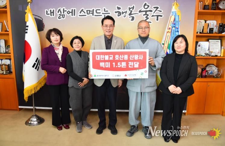뉴스펀치 김윤걸 기자 | 울주군 언양읍 산왕사가 11일 울주군 취약계층을 위해 백미(1.5㎏) 총 1천포를 기탁했다.