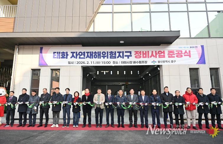 뉴스펀치 김윤걸 기자 | 울산 중구가 2월 11일 오후 3시 태화시장 배수펌프장(태화동 37-10번지)에서 ‘태화 자연재해위험개선지구 정비사업’ 태화시장 배수펌프장 준공식을 개최했다.