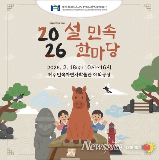 뉴스펀치 김용희 기자 | 제주민속자연사박물관은 2026년 병오년 설 명절을 맞아 오는 18일 박물관 야외광장에서 ‘설 민속한마당’을 개최한다고 밝혔다.