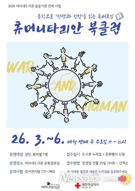 뉴스펀치 조평훈 기자 | 원주시 미리내도서관은 지역사회 내 독서 문화 확산을 위해 대한적십자사 인도법연구소와 연계한 재능 기부 프로그램 ‘휴머니타리안 북클럽’을 운영한다.