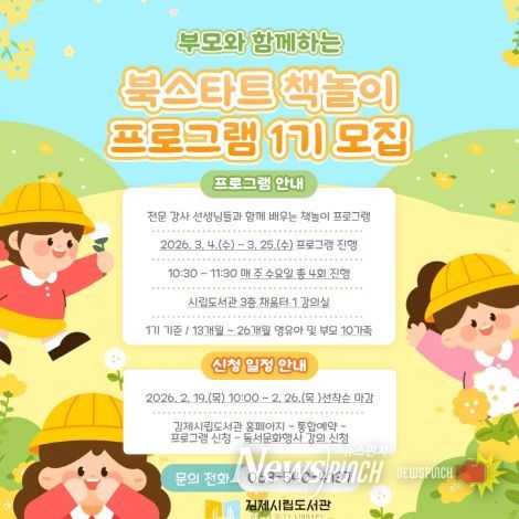 뉴스펀치 정홍균 기자 | 김제시립도서관은 2026년을 맞아 영·유아의 책과 첫 만남을 돕고, 부모와 아이가 함께 즐길 수 있는 독서문화를 조성하기 위해 ‘부모와 함께하는 북스타트 책놀이 프로그램 1기’를 진행한다고 밝혔다.