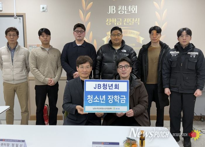 뉴스펀치 정홍균 기자 | 남원시가 위탁하고 사단법인 남원CYA(협회장 김범준)가 운영하는 남원시학교밖청소년지원센터(센터장 정일신)는 지난 2월 11일 남원시 대표적인 청년봉사단체인 JB 청년회(회장 강태균)로부터 회원들의 마음을 모은 장학금을 전달받았다.