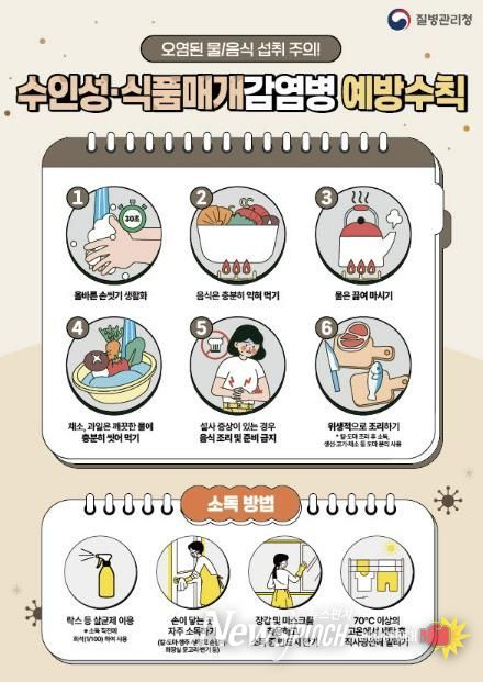 또한 연휴 기간 음식 관리가 소홀해질 경우 수인성·식품매개감염병이 발생할 수 있다. 특히 겨울철에 많이 발생하는 노로바이러스 감염증 환자가 높은 수준을 보이고 있어 각별한 주의가 필요하다. 노로바이러스는 사람 간 전파가 가능하므로 귀가 후와 식사 전에는 30초 이상 비누로 손을 씻고, 음식은 흐르는 물에 세척한 뒤 85℃ 이상에서 1분 이상 충분히 익혀 먹어야 한다. 해외여행 시에도 오염된 식수와 음식 섭취로 세균성 이질, 콜레라 등에 감염될 수 있어 주의해야 한다.